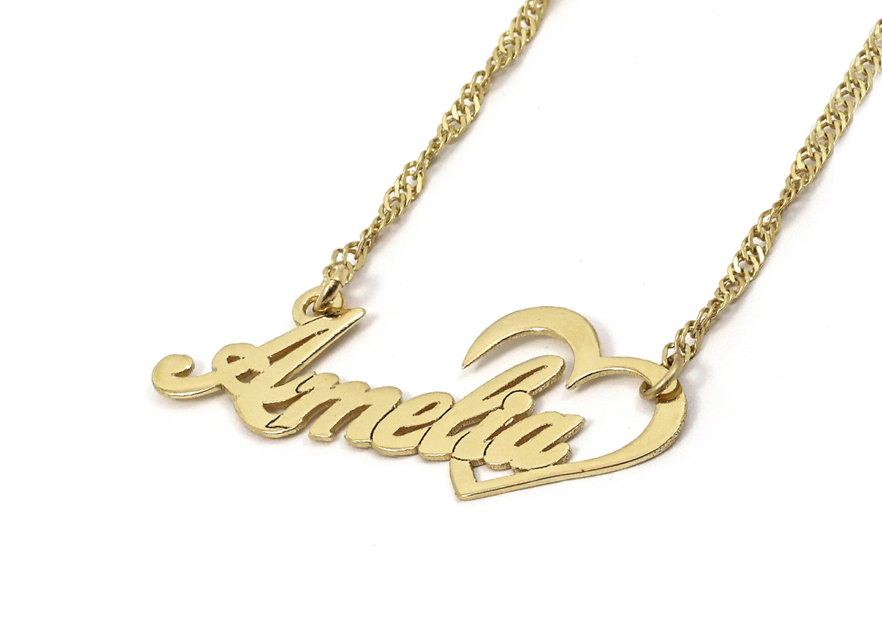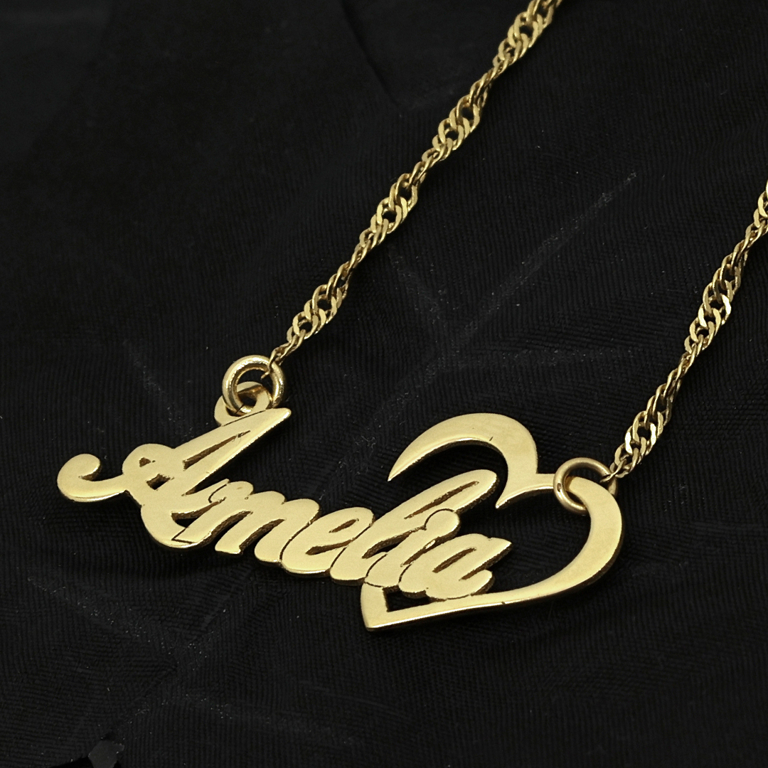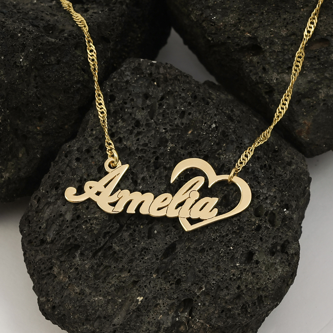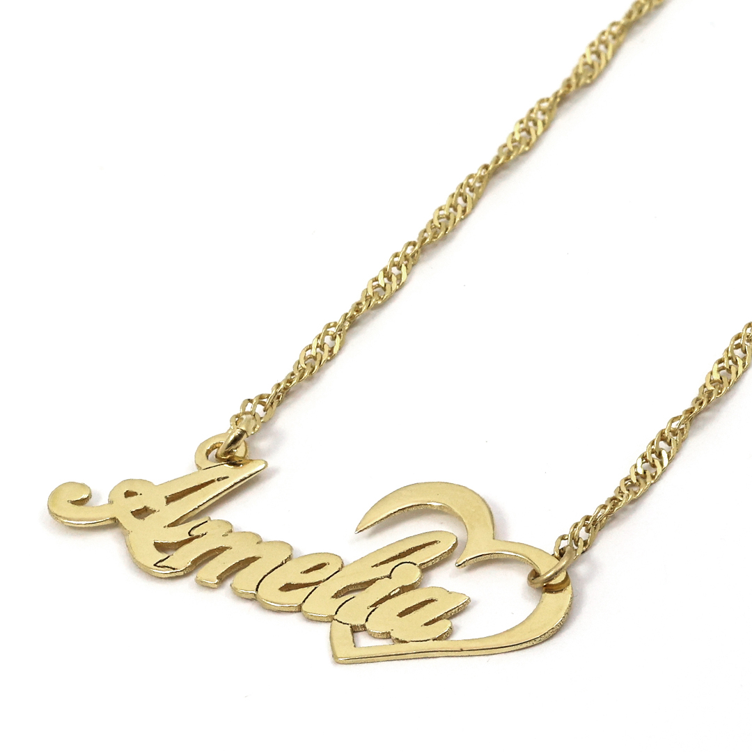 שרשרת שם עם כתב מיוחד ולצידו לב פתוח.