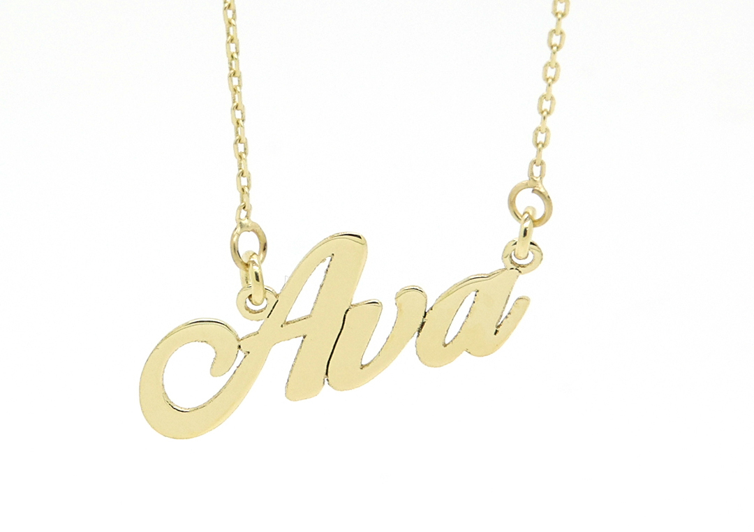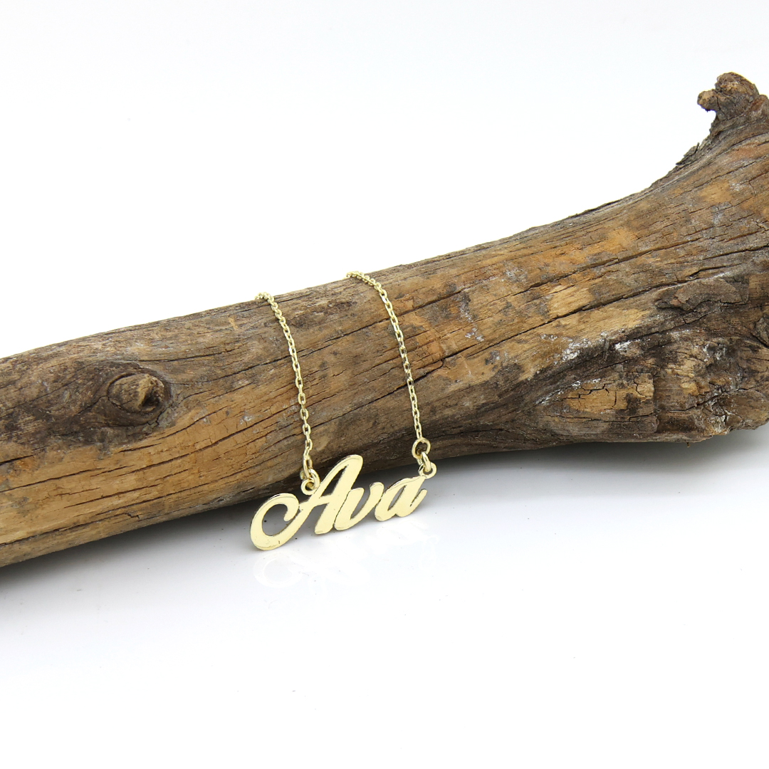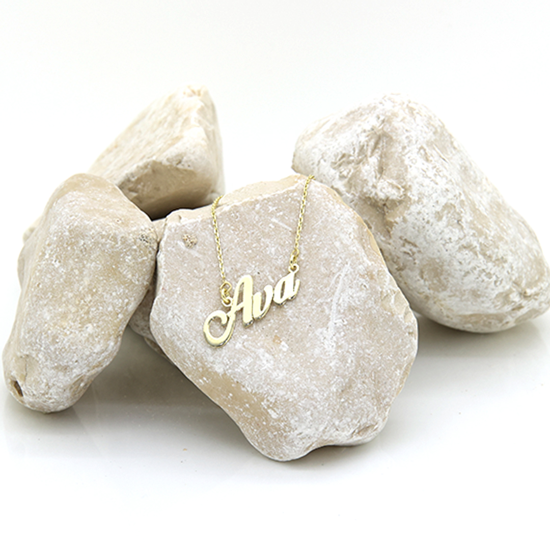 שרשרת שם עם פונט מסולסל ומיוחד.